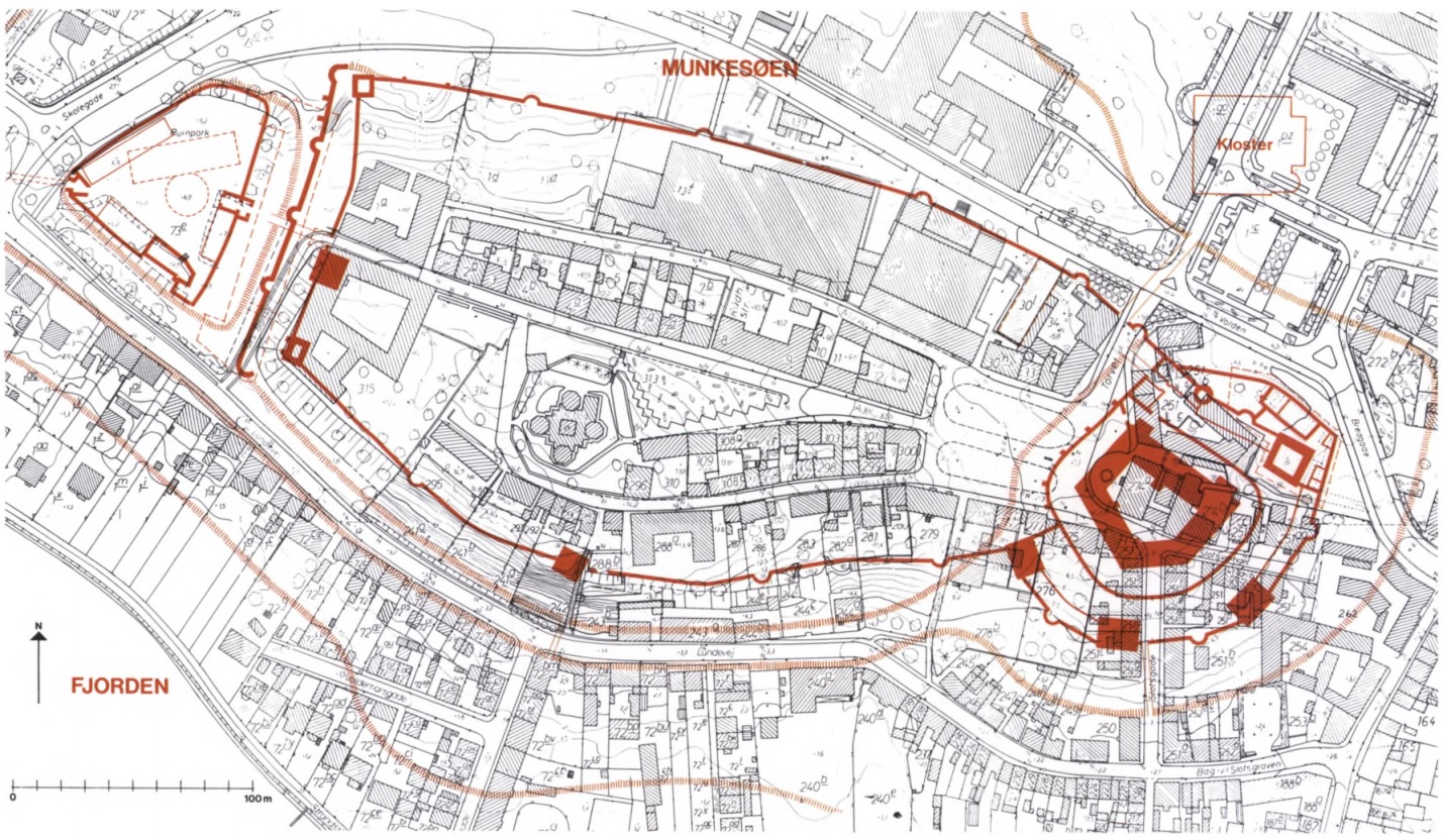 Bydelen er anlagt i perioden ca. 1170 til 1300 og har i grundplan ikke ændret sig siden. Set ovenfra, har byen form som en linse med en kort nord-sydakse på ca. 200 meter og en øst-vestakse på ca 400 meter med en borg i hver ende.