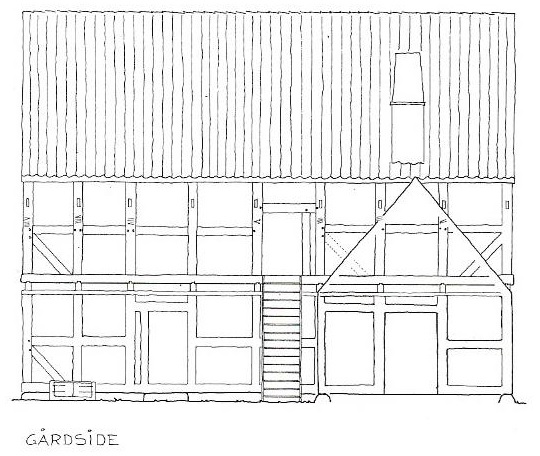 Vinkelret på forhuset, på bagsiden, har der været et køkken-hus.