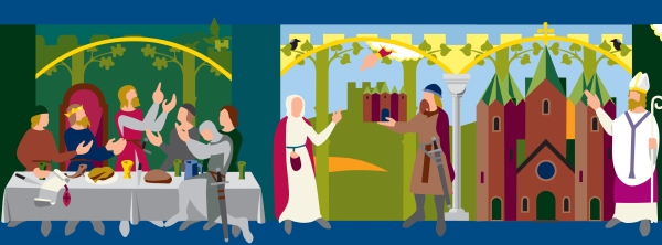 I Middelalderen forestillede man sig “Det himmelske Jerusalem” som en befæstet by med fem tårne.